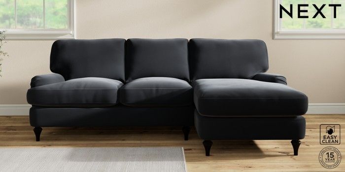 7.0.3 Buy Sadie Deep Relaxed Sit Medium Sofa Chaise - Right Hand Plush Velvet Easy Clean Charcoal Grey High Slim Turned - Dark from the Next UK online shop Click here to use our accessible website
