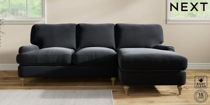 7.0.3 Buy Sadie Deep Relaxed Sit Medium Sofa Chaise - Right Hand Plush Velvet Easy Clean Charcoal Grey High Slim Turned - Light from the Next UK online shop Click here to use our accessible website