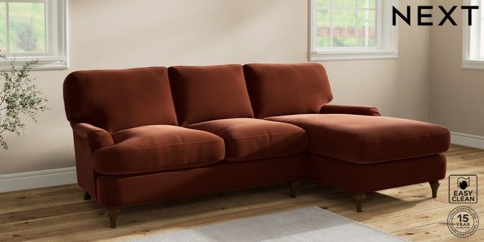 6.12.1 Buy Sadie Deep Relaxed Sit Medium Sofa Chaise - Right Hand Plush Velvet Easy Clean Ginger Orange High Slim Turned - Mid from the Next UK online shop Click here to use our accessible website