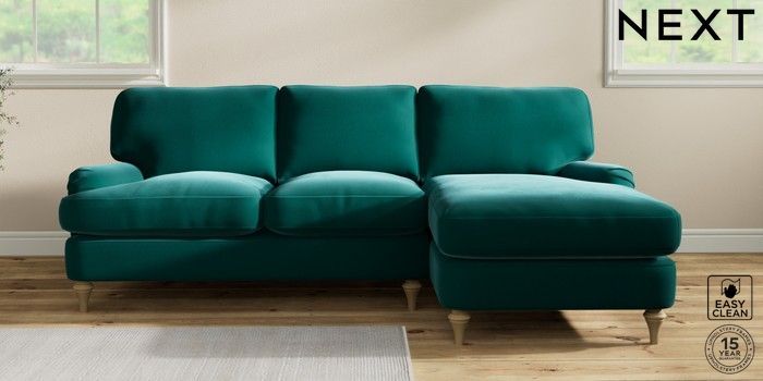 7.0.3 Buy Sadie Deep Relaxed Sit Medium Sofa Chaise - Right Hand Plush Velvet Easy Clean Juniper Green High Slim Turned - Light from the Next UK online shop Click here to use our accessible website