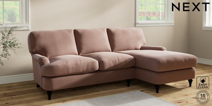 6.12.1 Buy Sadie Deep Relaxed Sit Medium Sofa Chaise - Right Hand Plush Velvet Easy Clean Mid Natural High Slim Turned - Dark from the Next UK online shop Click here to use our accessible website