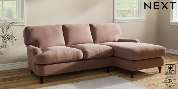6.12.1 Buy Sadie Deep Relaxed Sit Medium Sofa Chaise - Right Hand Plush Velvet Easy Clean Mid Natural High Slim Turned - Dark Brown from the Next UK online shop Click here to use our accessible website