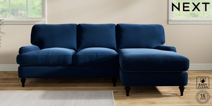 7.0.3 Buy Sadie Deep Relaxed Sit Medium Sofa Chaise - Right Hand Plush Velvet Easy Clean Navy Blue High Slim Turned - Dark from the Next UK online shop Click here to use our accessible website