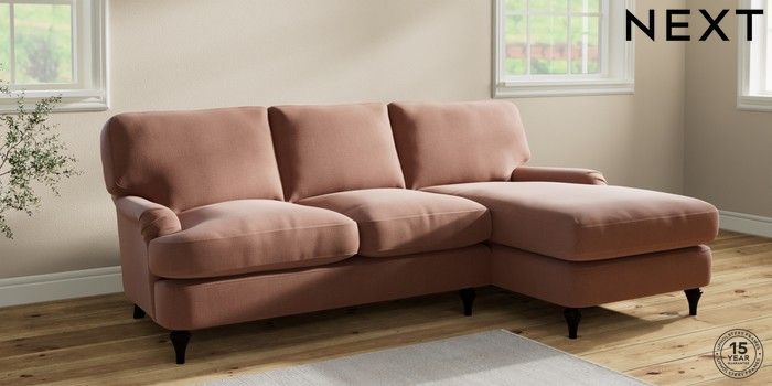 6.12.1 Buy Sadie Deep Relaxed Sit Medium Sofa Chaise - Right Hand Relaxed Linen Look Light Rust Brown High Slim Turned - Dark from the Next UK online shop Click here to use our accessible website