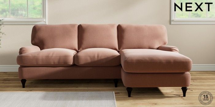 7.0.3 Buy Sadie Deep Relaxed Sit Medium Sofa Chaise - Right Hand Relaxed Linen Look Light Rust Brown High Slim Turned - Dark from the Next UK online shop Click here to use our accessible website