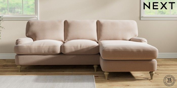 7.0.3 Buy Sadie Deep Relaxed Sit Medium Sofa Chaise - Right Hand Relaxed Linen Look Mid Natural High Slim Turned - Light from the Next UK online shop Click here to use our accessible website
