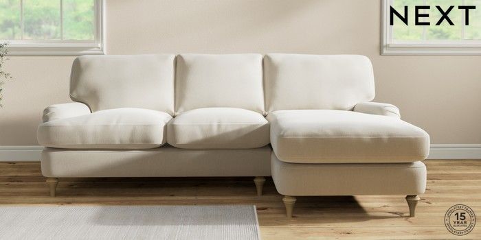 7.0.3 Buy Sadie Deep Relaxed Sit Medium Sofa Chaise - Right Hand Relaxed Linen Look Oyster High Slim Turned - Light from the Next UK online shop Click here to use our accessible website