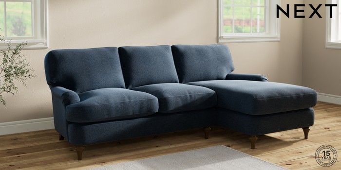 6.12.1 Buy Sadie Deep Relaxed Sit Medium Sofa Chaise - Right Hand Ripple Chenille Dark Blue High Slim Turned - Mid from the Next UK online shop Click here to use our accessible website