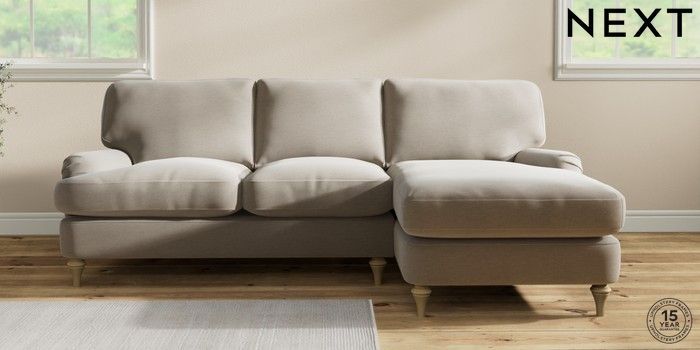 7.0.3 Buy Sadie Deep Relaxed Sit Medium Sofa Chaise - Right Hand Ripple Chenille Light Natural High Slim Turned - Light from the Next UK online shop Click here to use our accessible website