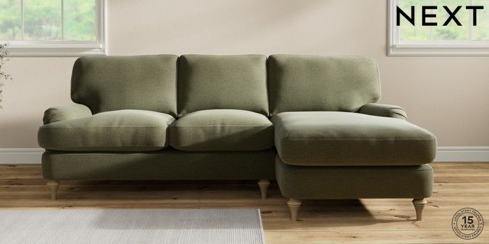 7.0.3 Buy Sadie Deep Relaxed Sit Medium Sofa Chaise - Right Hand Ripple Chenille Mid Moss Green High Slim Turned - Light from the Next UK online shop Click here to use our accessible website
