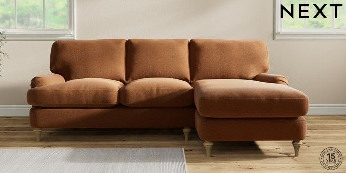 7.0.3 Buy Sadie Deep Relaxed Sit Medium Sofa Chaise - Right Hand Ripple Chenille Mid Rust Brown High Slim Turned - Light from the Next UK online shop Click here to use our accessible website