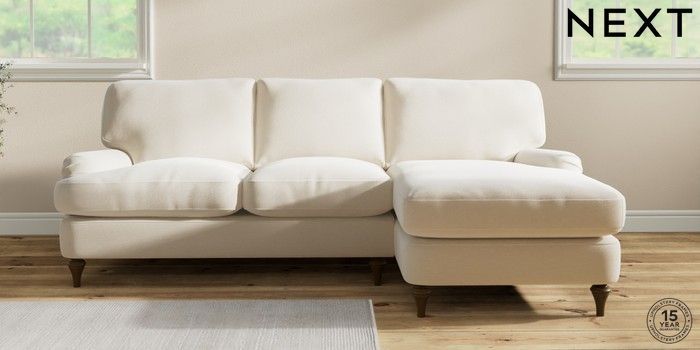 7.0.3 Buy Sadie Deep Relaxed Sit Medium Sofa Chaise - Right Hand Ripple Chenille Oyster High Slim Turned - Mid from the Next UK online shop Click here to use our accessible website