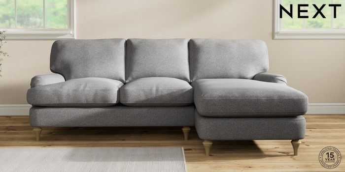 7.0.3 Buy Sadie Deep Relaxed Sit Medium Sofa Chaise - Right Hand Studio Chenille Mid Grey High Slim Turned - Light from the Next UK online shop Click here to use our accessible website
