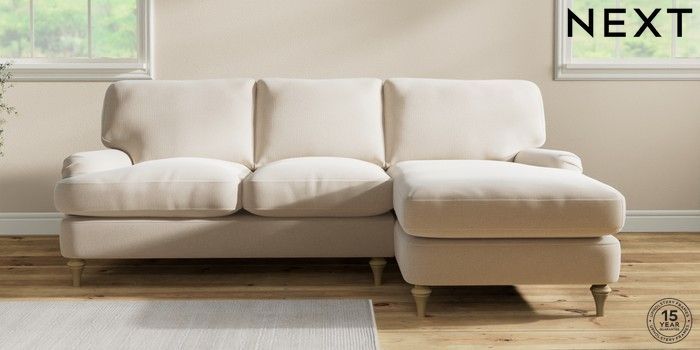 7.0.3 Buy Sadie Deep Relaxed Sit Medium Sofa Chaise - Right Hand Studio Chenille Oyster High Slim Turned - Light from the Next UK online shop Click here to use our accessible website