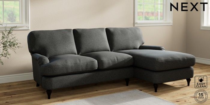 6.12.1 Buy Sadie Deep Relaxed Sit Medium Sofa Chaise - Right Hand Tweedy Blend Easy Clean Charcoal Grey High Slim Turned - Dark from the Next UK online shop Click here to use our accessible website