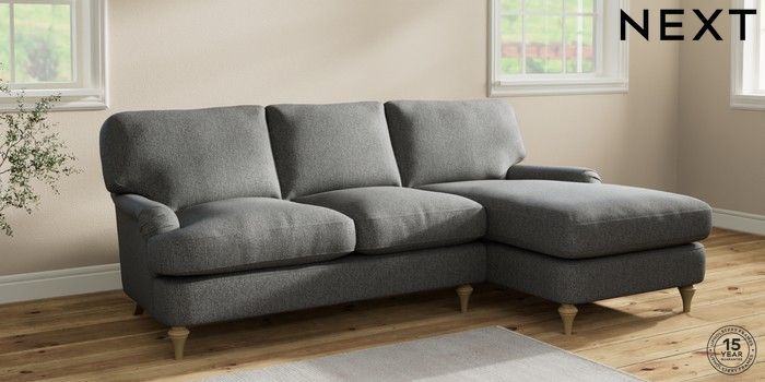 6.12.1 Buy Sadie Deep Relaxed Sit Medium Sofa Chaise - Right Hand Tweedy Chenille Dark Grey High Slim Turned - Light from the Next UK online shop Click here to use our accessible website