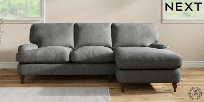 7.0.3 Buy Sadie Deep Relaxed Sit Medium Sofa Chaise - Right Hand Tweedy Chenille Dark Grey High Slim Turned - Mid from the Next UK online shop Click here to use our accessible website