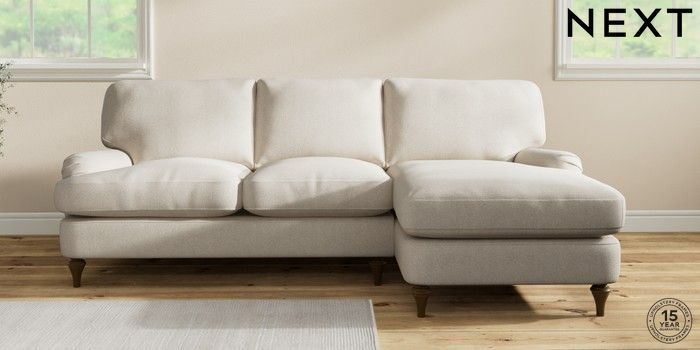 7.0.3 Buy Sadie Deep Relaxed Sit Medium Sofa Chaise - Right Hand Tweedy Chenille Oyster High Slim Turned - Mid from the Next UK online shop Click here to use our accessible website