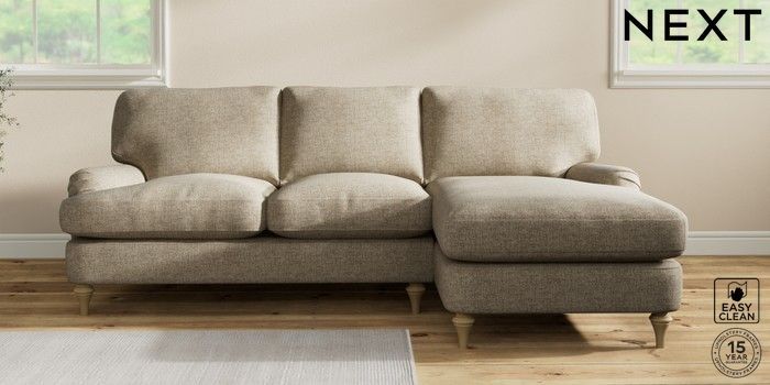 7.0.3 Buy Sadie Deep Relaxed Sit Medium Sofa Chaise - Right Hand Woven Chenille Easy Clean Mid Natural High Slim Turned - Light from the Next UK online shop Click here to use our accessible website
