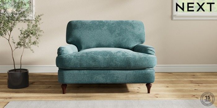 6.12.1 Buy Sadie Deep Relaxed Sit Snuggle Chunky Chenille Mid Teal Green High Slim Turned - Dark Brown from the Next UK online shop Click here to use our accessible website