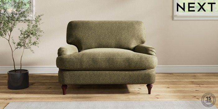 6.12.1 Buy Sadie Deep Relaxed Sit Snuggle Cotswold Chenille Dark Green High Slim Turned - Dark Brown from the Next UK online shop Click here to use our accessible website