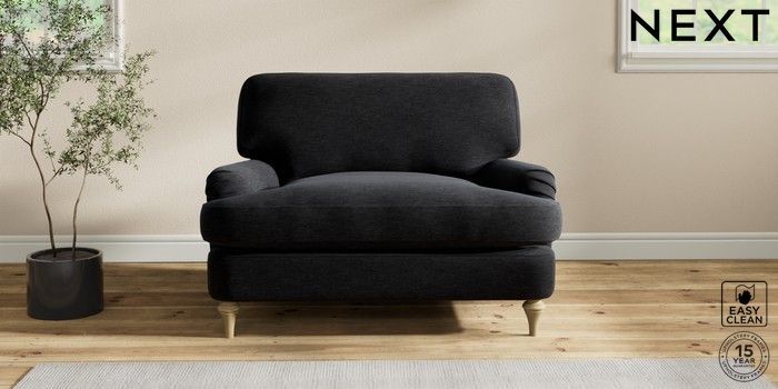 6.12.1 Buy Sadie Deep Relaxed Sit Snuggle Fine Chenille Easy Clean Black High Slim Turned - Light from the Next UK online shop Click here to use our accessible website