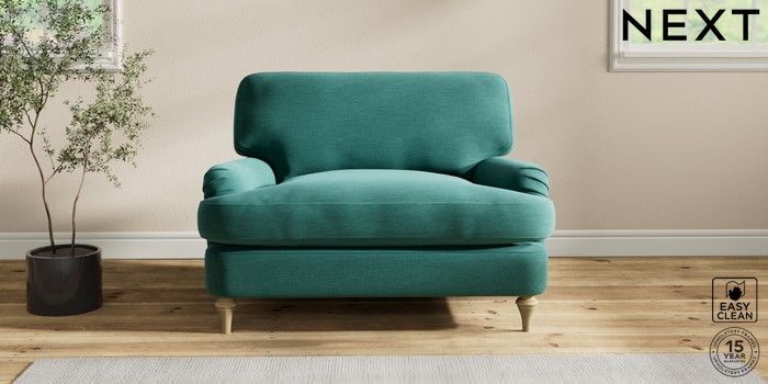 6.12.1 Buy Sadie Deep Relaxed Sit Snuggle Fine Chenille Easy Clean Dark Juniper Green High Slim Turned - Light from the Next UK online shop Click here to use our accessible website