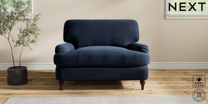 6.12.1 Buy Sadie Deep Relaxed Sit Snuggle Fine Chenille Easy Clean Dark Navy Blue High Slim Turned - Dark Brown from the Next UK online shop Click here to use our accessible website