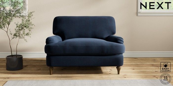 6.12.1 Buy Sadie Deep Relaxed Sit Snuggle Fine Chenille Easy Clean Dark Navy Blue High Slim Turned - Mid from the Next UK online shop Click here to use our accessible website