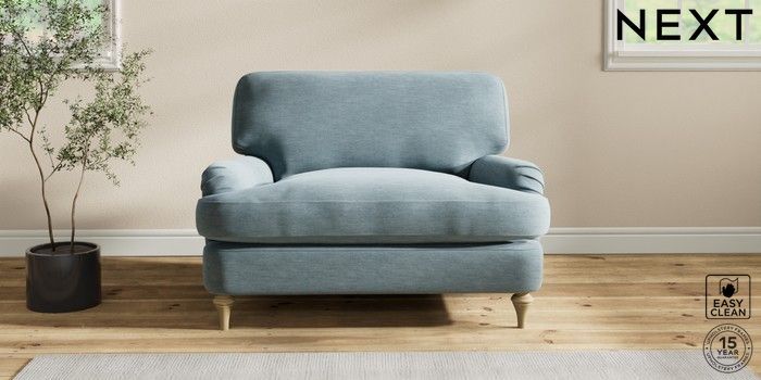 6.12.1 Buy Sadie Deep Relaxed Sit Snuggle Fine Chenille Easy Clean Mid Blue High Slim Turned - Light from the Next UK online shop Click here to use our accessible website