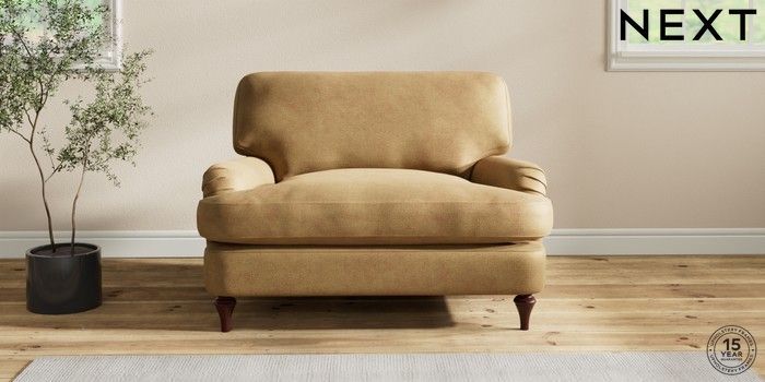 6.12.1 Buy Sadie Deep Relaxed Sit Snuggle Luxe Chenille Honey Yellow High Slim Turned - Dark Brown from the Next UK online shop Click here to use our accessible website