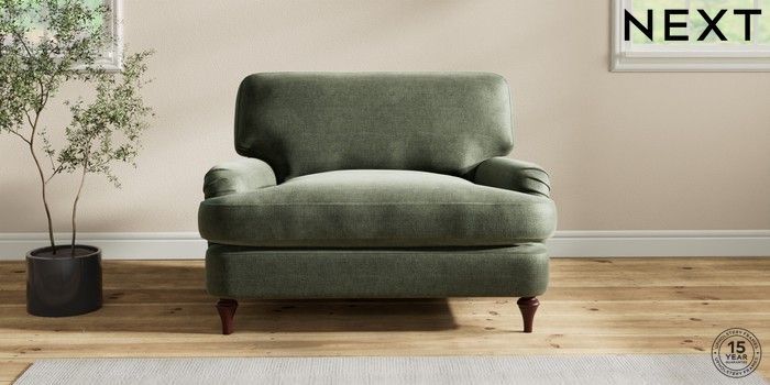 6.12.1 Buy Sadie Deep Relaxed Sit Snuggle Luxe Chenille Mid Green High Slim Turned - Dark Brown from the Next UK online shop Click here to use our accessible website