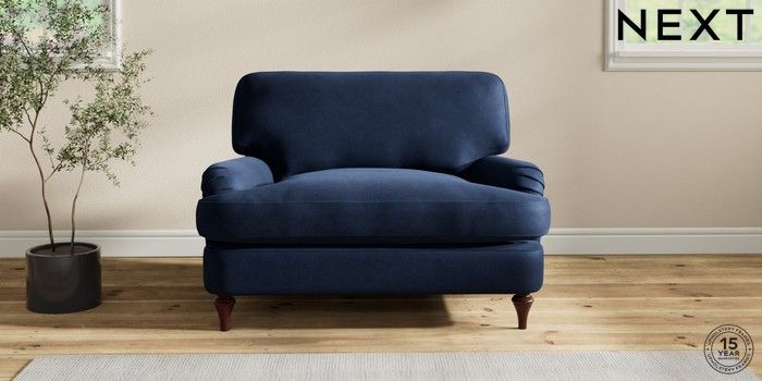 6.12.1 Buy Sadie Deep Relaxed Sit Snuggle Luxe Chenille Navy Blue High Slim Turned - Dark Brown from the Next UK online shop Click here to use our accessible website