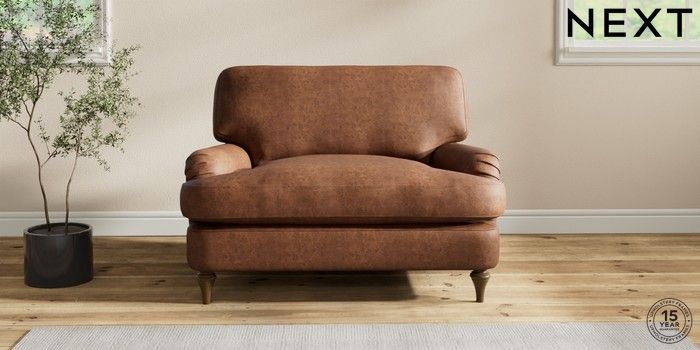 6.12.1 Buy Sadie Deep Relaxed Sit Snuggle Monza Faux Leather Easy Clean Chestnut Brown High Slim Turned - Mid from the Next UK online shop Click here to use our accessible website