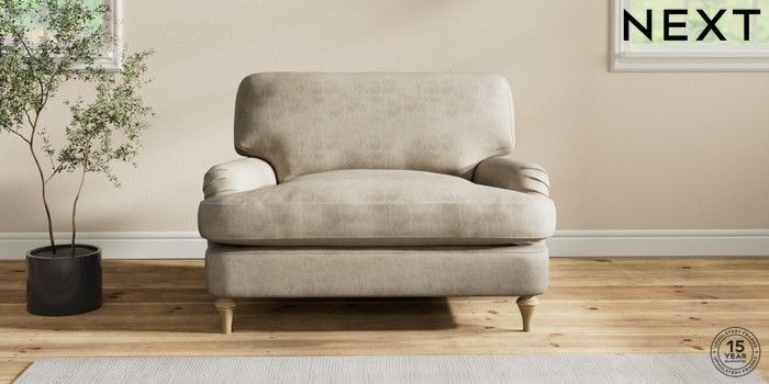 6.12.1 Buy Sadie Deep Relaxed Sit Snuggle Monza Faux Leather Easy Clean Mink Brown High Slim Turned - Light from the Next UK online shop Click here to use our accessible website