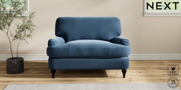 6.12.1 Buy Sadie Deep Relaxed Sit Snuggle Plush Velvet Easy Clean Airforce Blue High Slim Turned - Dark from the Next UK online shop Click here to use our accessible website