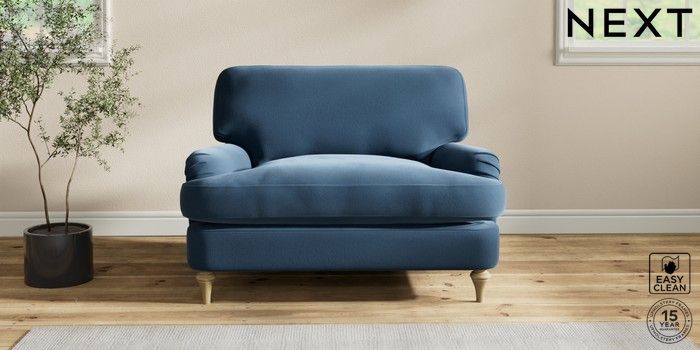 6.12.1 Buy Sadie Deep Relaxed Sit Snuggle Plush Velvet Easy Clean Airforce Blue High Slim Turned - Light from the Next UK online shop Click here to use our accessible website
