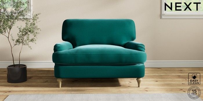 6.12.1 Buy Sadie Deep Relaxed Sit Snuggle Plush Velvet Easy Clean Juniper Green High Slim Turned - Light from the Next UK online shop Click here to use our accessible website