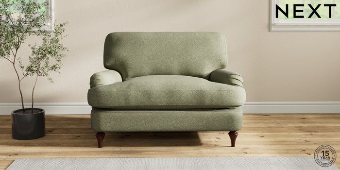 6.12.1 Buy Sadie Deep Relaxed Sit Snuggle Tweedy Chenille Mid Moss Green High Slim Turned - Dark Brown from the Next UK online shop Click here to use our accessible website