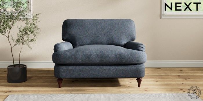 6.12.1 Buy Sadie Deep Relaxed Sit Snuggle Tweedy Chenille Navy Blue High Slim Turned - Dark Brown from the Next UK online shop Click here to use our accessible website