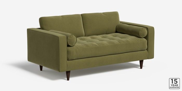6.11.4 Buy Scott by Made 3 Seater Small Sofa Matt Velvet Easy Clean Fern Green Tapered - Walnut from the Next UK online shop Click here to use our accessible website