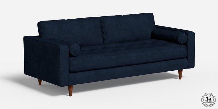 6.12.1 Buy Scott by Made 4 Seater Sofa Matt Velvet Easy Clean Dark Navy Blue Tapered - Walnut from the Next UK online shop Click here to use our accessible website