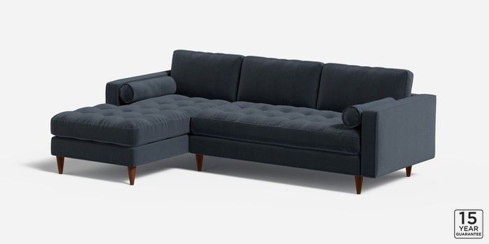 6.11.4 Buy Scott by Made Medium Sofa Chaise - Left Hand Matt Corduroy Midnight Blue Tapered - Walnut from the Next UK online shop Click here to use our accessible website
