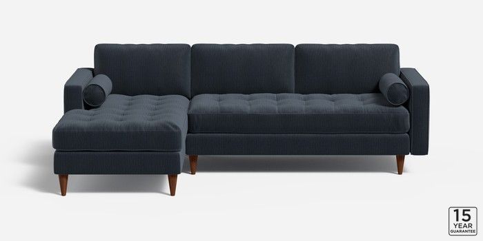 6.12.1 Buy Scott by Made Medium Sofa Chaise - Left Hand Matt Corduroy Midnight Blue Tapered - Walnut from the Next UK online shop Click here to use our accessible website