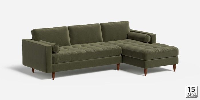 6.10.9 Buy Scott by Made Medium Sofa Chaise - Right Hand Matt Corduroy Fennel Green Tapered - Walnut from the Next UK online shop Click here to use our accessible website