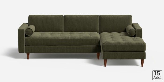 6.12.1 Buy Scott by Made Medium Sofa Chaise - Right Hand Matt Corduroy Fennel Green Tapered - Walnut from the Next UK online shop Click here to use our accessible website
