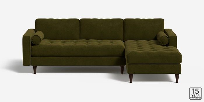 6.12.1 Buy Scott by Made Medium Sofa Chaise - Right Hand Matt Velvet Easy Clean Deep Olive Green Tapered - Walnut from the Next UK online shop Click here to use our accessible website
