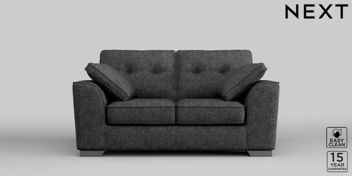 6.11.4 Buy Stamford Buttoned Back 2 Seater Small Sofa Boucle Weave Easy Clean Charcoal Grey Large Square Angle - Gunmetal from the Next UK online shop Click here to use our accessible website