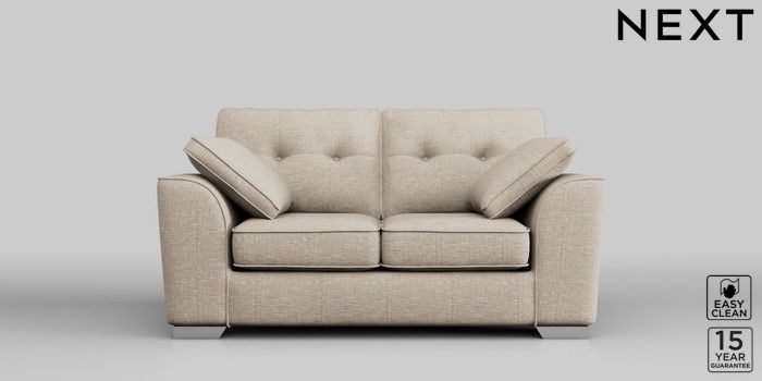 6.11.4 Buy Stamford Buttoned Back 2 Seater Small Sofa Boucle Weave Easy Clean Dark Natural Large Square Angle - Chrome Metal from the Next UK online shop Click here to use our accessible website