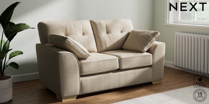 7.2.10 Buy Stamford Buttoned Back 2 Seater Small Sofa Boucle Weave Easy Clean Dark Natural Large Square Angle - Light from the Next UK online shop Click here to use our accessible website